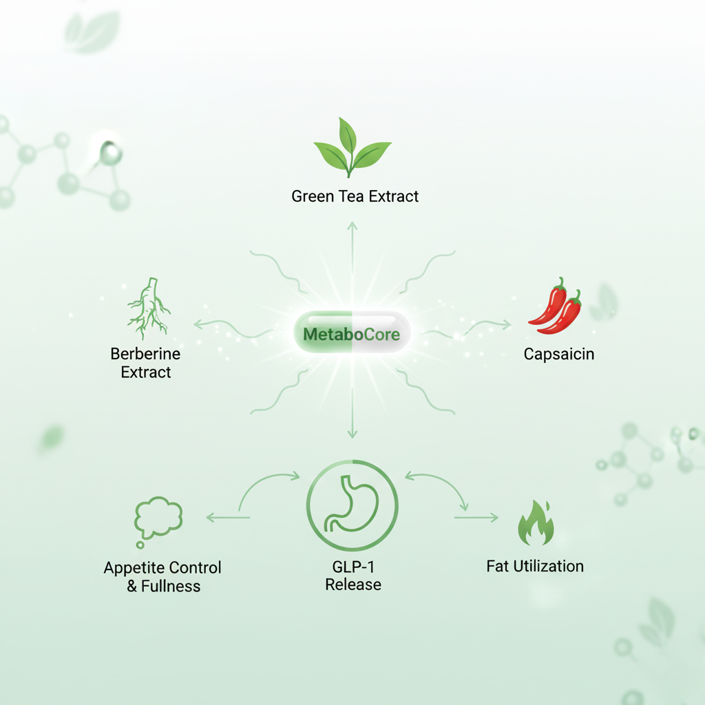 MetaboCore naturally supports GLP-1 activation, the key hormone that regulates appetite, energy, and metabolism.